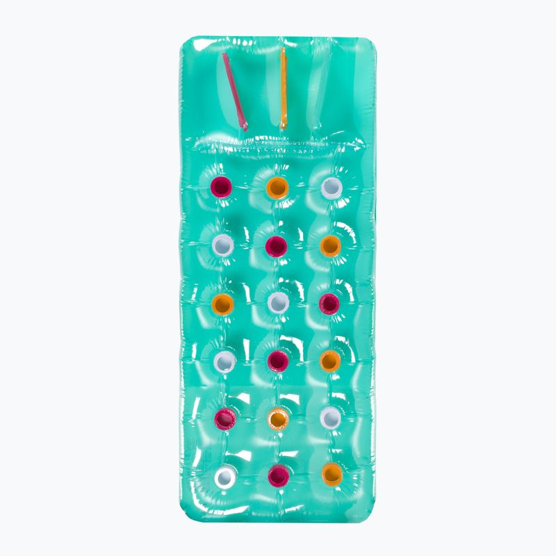 Matrace AQUASTIC je v zelené barvě s barevnými komorami, což mu dodává originální a svěží vzhled. Nejenže si užijete odpočinek na vodě, ale určitě se vyčníte mezi ostatními plážovými návštěvníky. Celé je vyrobeno s náležitou péčí a pozorností k detailům.