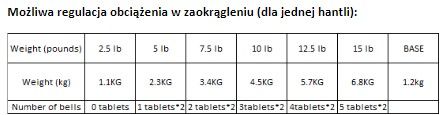 Technické informace: Rozsah nastavení jedné činky v zaokrouhlení pro: