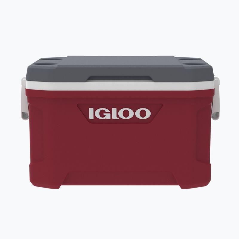 Igloo Latitude 52 - ideální partner na výpravy. Otočné úchyty, bungee šňůra pro další vybavení, studené nápoje se samostatnými držáky na hrnky. Chladnička pojme až 85 plechovek.