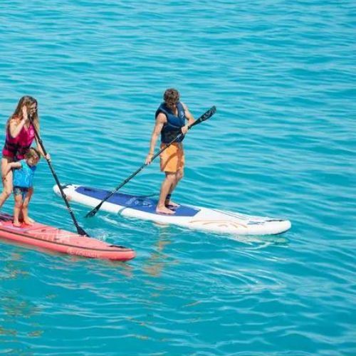 Deska je vybavena D-kroužky, které umožňují snadné připevnění různých doplňků, jako je leash nebo kajakové sedadlo. D-kroužky také umožňují zakotvení desky, což zvyšuje její stabilitu při stání na vodě.