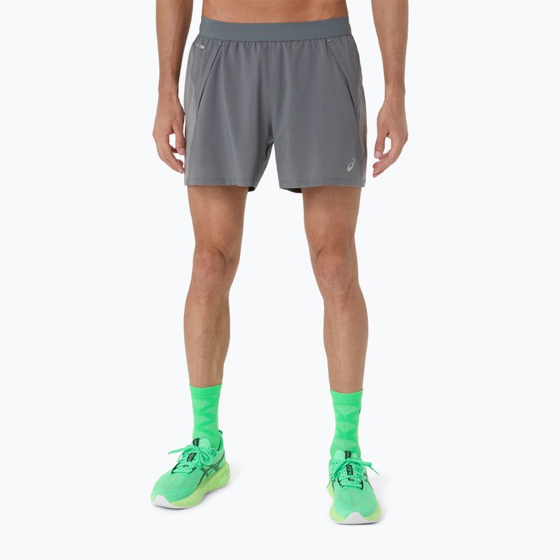 Pánské běžecké šortky ASICS Road 5IN clay grey/steel grey/illuminate green (2011D247-020)