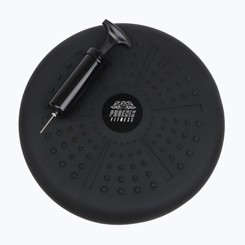 Oboustranný polštář Phoenix Fitness 33 cm zapojuje hluboké svaly, zlepšuje rovnováhu, koordinaci a držení těla. Má hladký a výstupkovaný povrch a regulovatelnou nestabilitu díky pumpě v sadě – ideální pro fitness, kancelář, rehabilitaci a každodenní sezení.