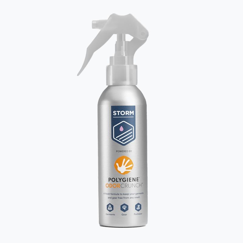 Storm Odor Crunch Spray je přípravek, který eliminuje nepříjemné zápachy z obuvi a sportovního vybavení. Neutralizuje bakterie odpovědné za vznik zápachů a zanechává dlouhotrvající pocit svěžesti.