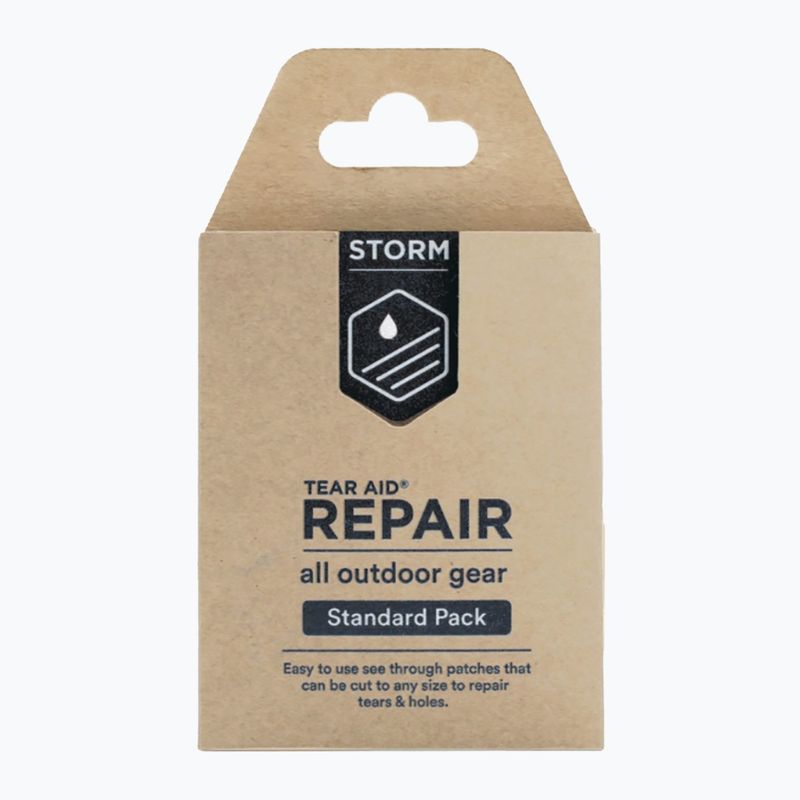 Sada Storm Tear Aid je kompaktní opravná sada na oblečení a outdoorové vybavení. Průhledné, elastické záplaty umožňují rychle odstranit trhliny bez šití, poskytující voděodolnou a trvalou opravu za jakýchkoli podmínek.