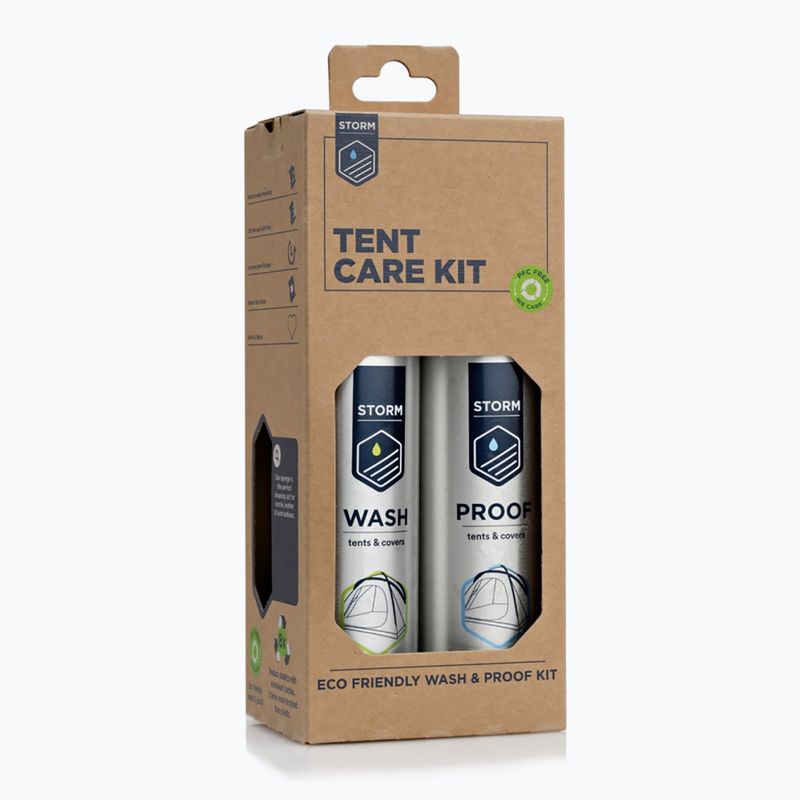 Sada Storm Tent Care je kompletní balíček pro čištění, impregnaci a opravu stanů. Odstraňuje nečistoty, obnovuje voděodolnost a umožňuje rychlé odstranění poškození, čímž prodlužuje životnost outdoorového vybavení.