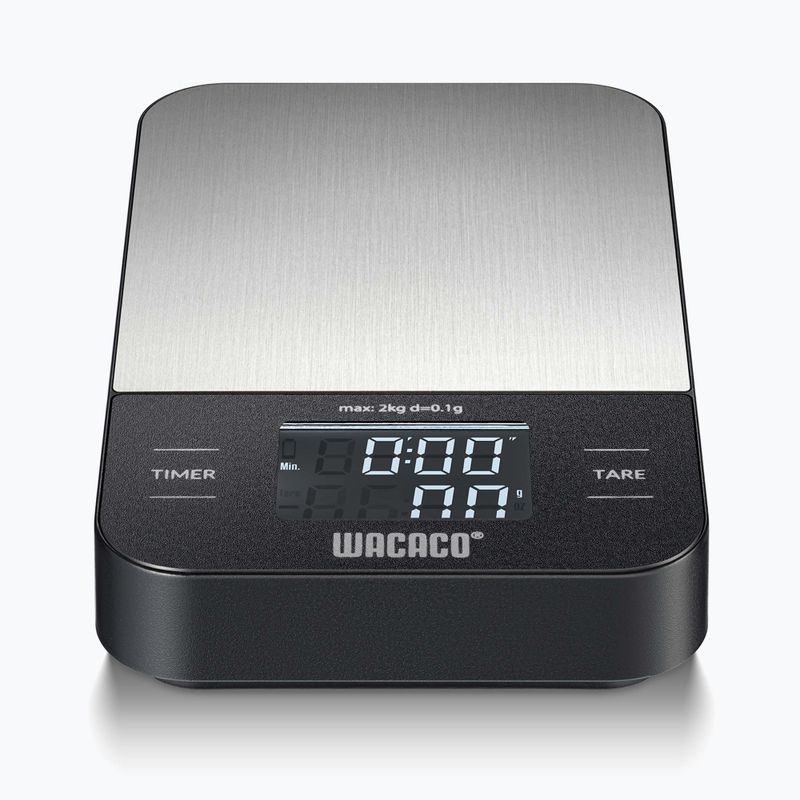 Váha na kávu WACACO Exagram – kompaktní, přesná elektronická váha na espresso a filtrovanou kávu, ideální pro domácí použití a na cesty, zajišťující rychlé a přesné měření, snadné ovládání a pohodlné vážení zrn a nápoje.